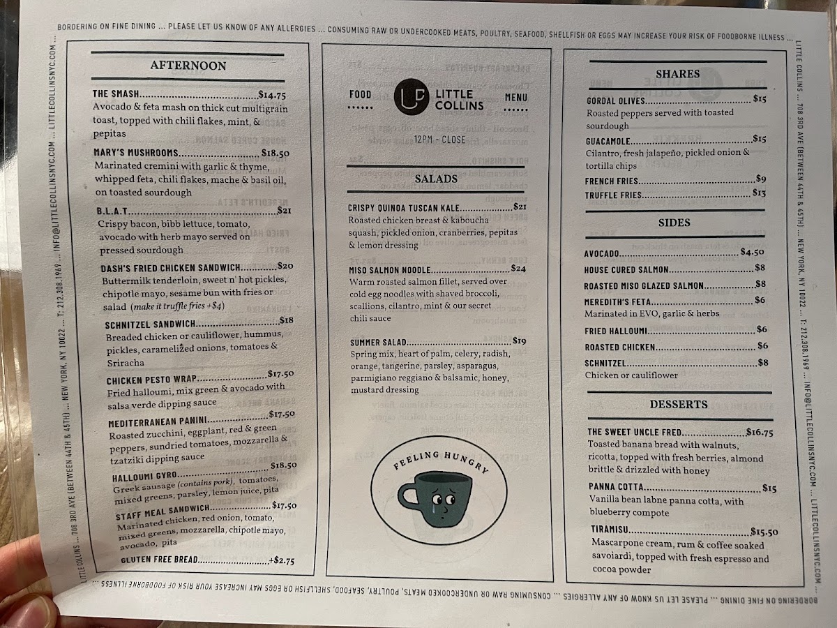 Little Collins is a delightful gem nestled in the heart of New York City, specifically at 708 3rd Ave. This charming café has quickly gained a reputation as a must-visit destination for brunch lovers. With its welcoming atmosphere and attentive staff, Little Collins offers more than just a meal; it provides an experience that leaves diners feeling satisfied and content.